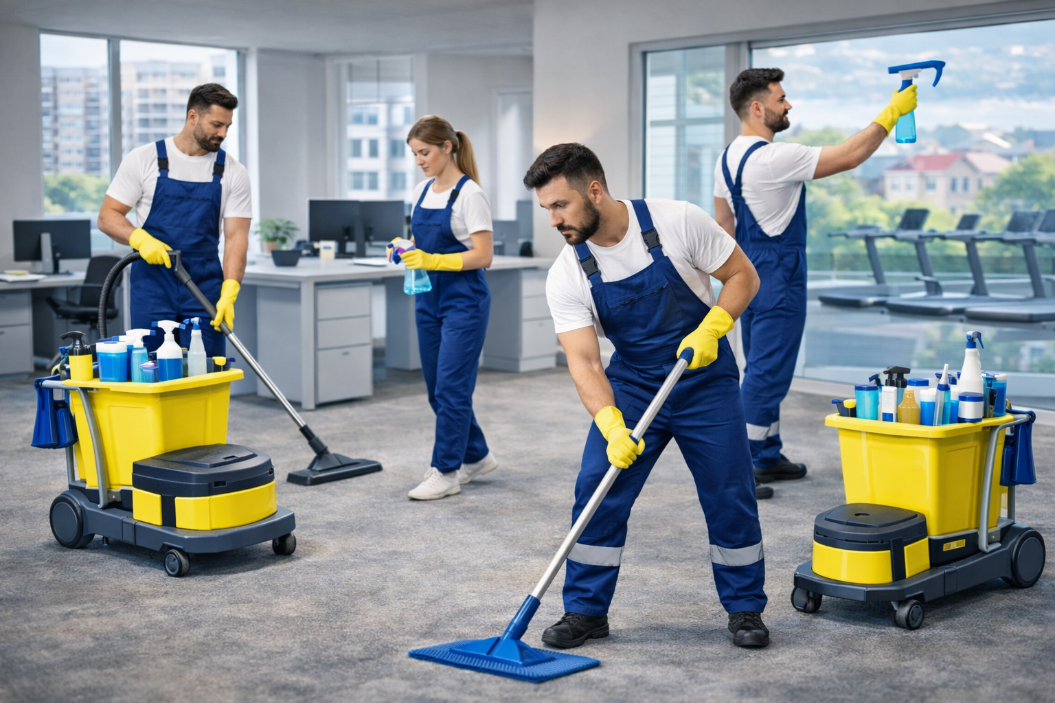 Naša ekipa zagotavlja čistočo športnih prostorov, garderob, telovadnic, fitnesov in sanitarij, da obiskovalci vedno uporabljajo varne in urejene prostore.
